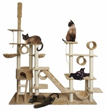 96” Tan White Cat Tree Play House Gym Tower Condo Scratch Post Rope Basket Swing